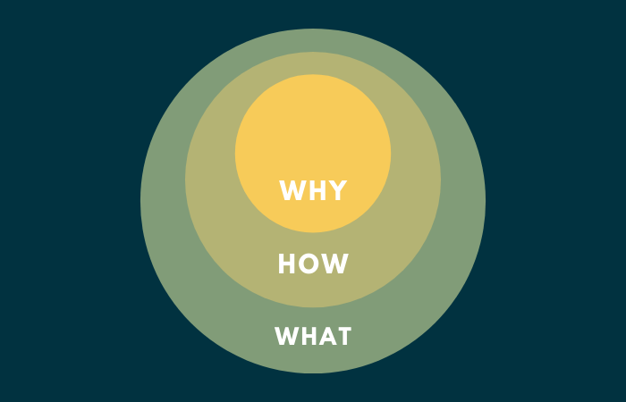 The why in The Golden Circle refers to the belief that one holds their purpose for getting up in the morning. Another way to frame this lens is to ask the question, “Why should someone care?” or “Why does your company exist?”