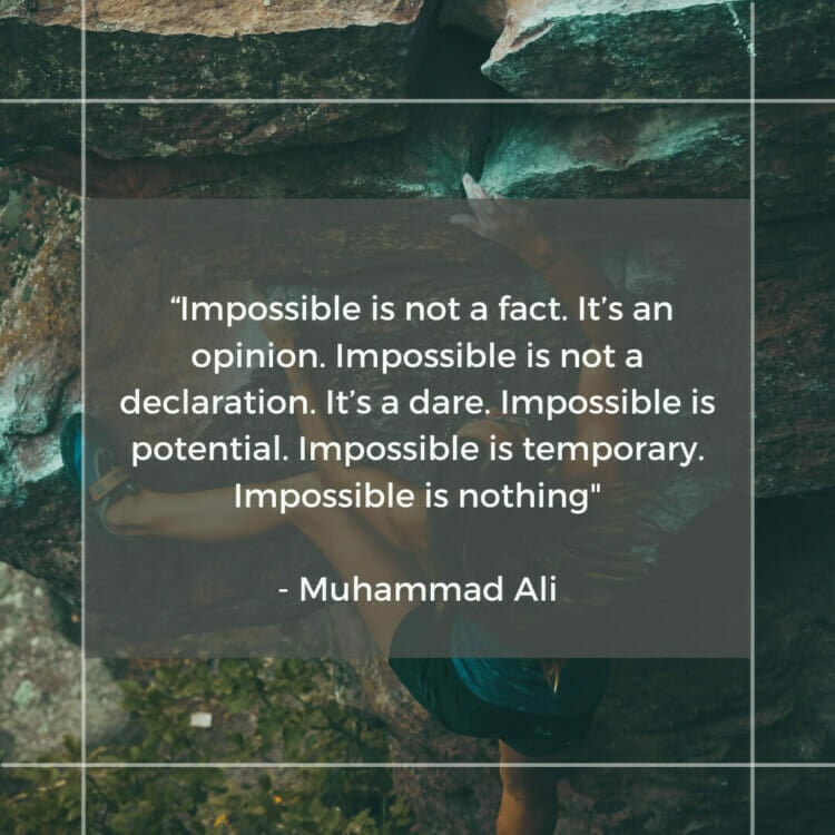 This is one of the Muhammad Ali quotes that encapsulate his whole being. As humans, we are conditioned to see fear as a bad thing. Hundreds of years ago, and even today to some degree, fear of things is what kept us alive and breathing. Today, that fear can actually be used as fuel to propel you forward instead of a weight that holds you back. That big goal that seems almost impossible? That’s the one that’s going to give you the most satisfaction to achieve.
